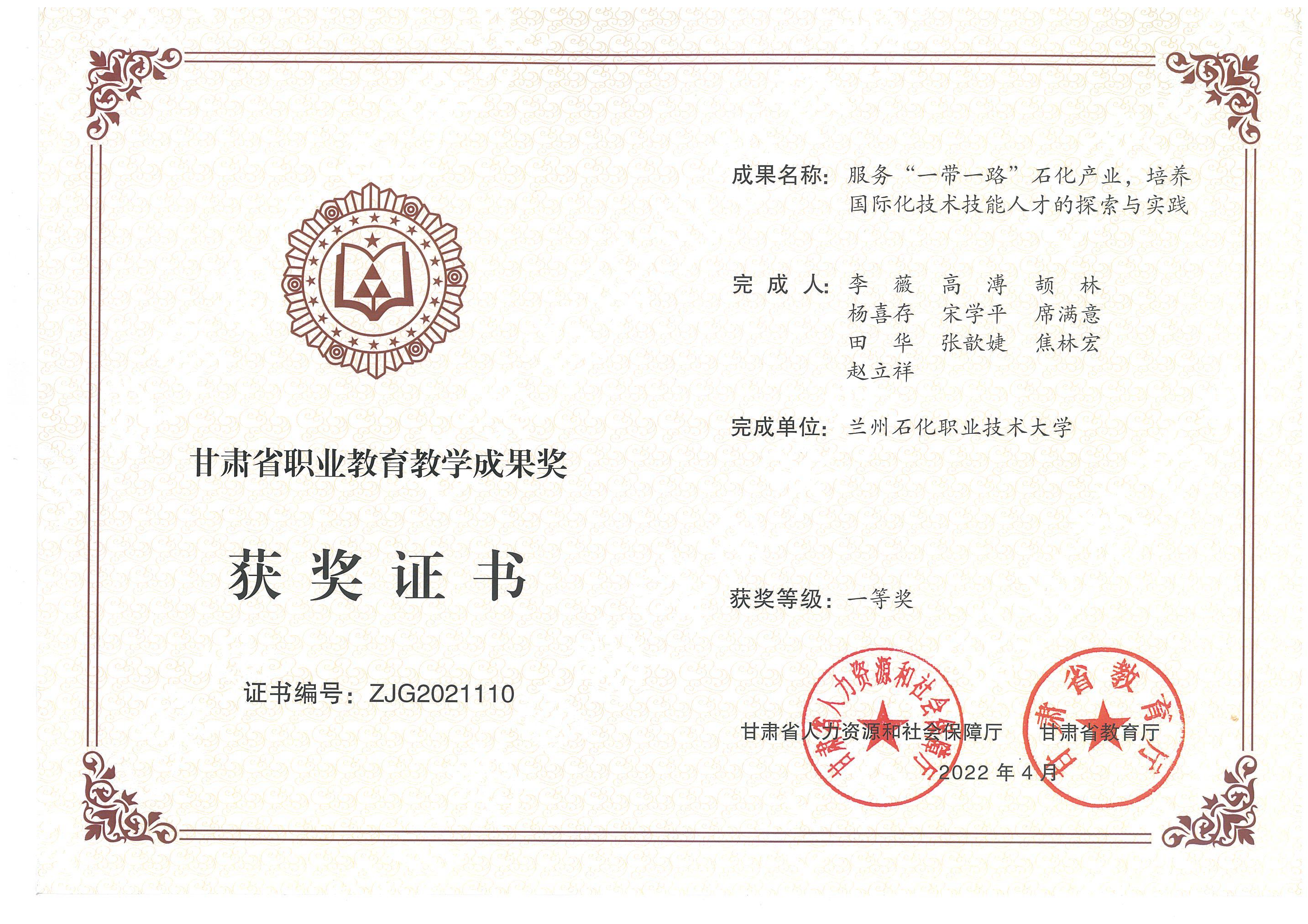 省级教学成果一等奖-服务“一带一路”