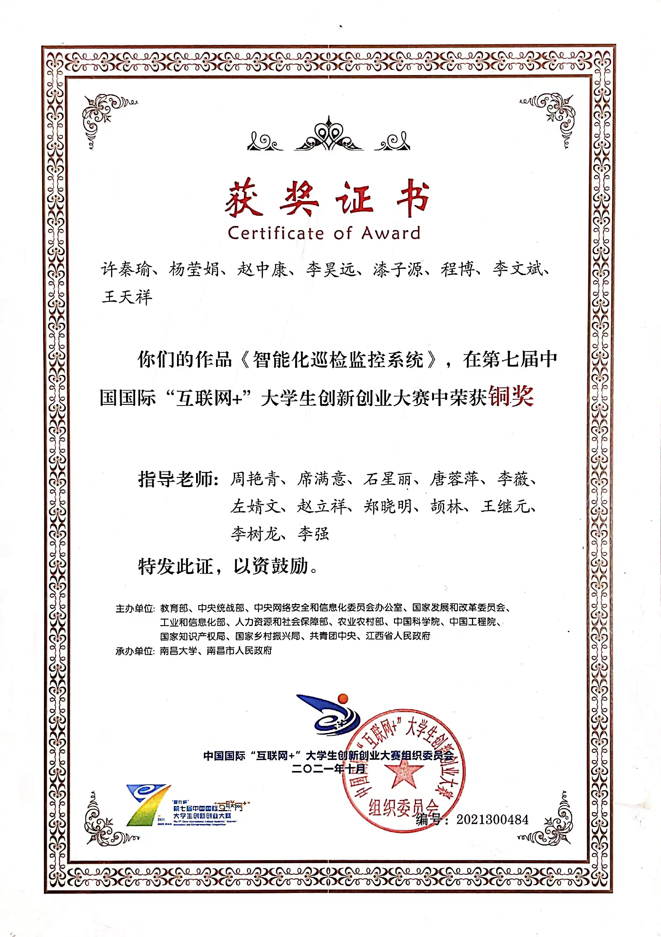 《智能化巡检监控系统》项目获国赛铜奖