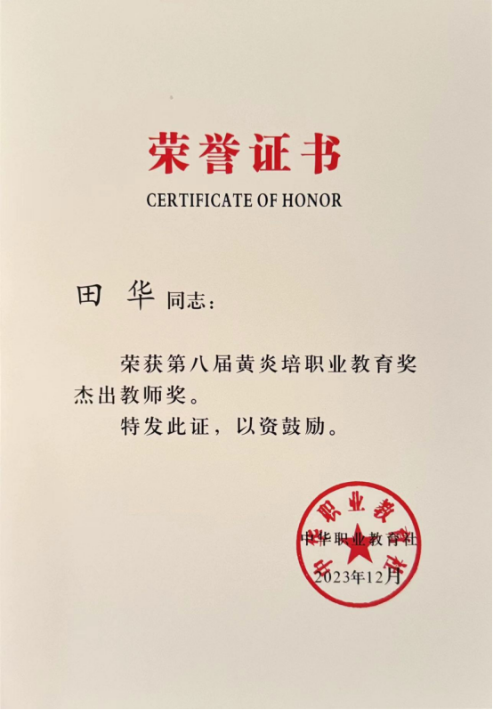 第八届黄炎培职业教育奖杰出教师-田华