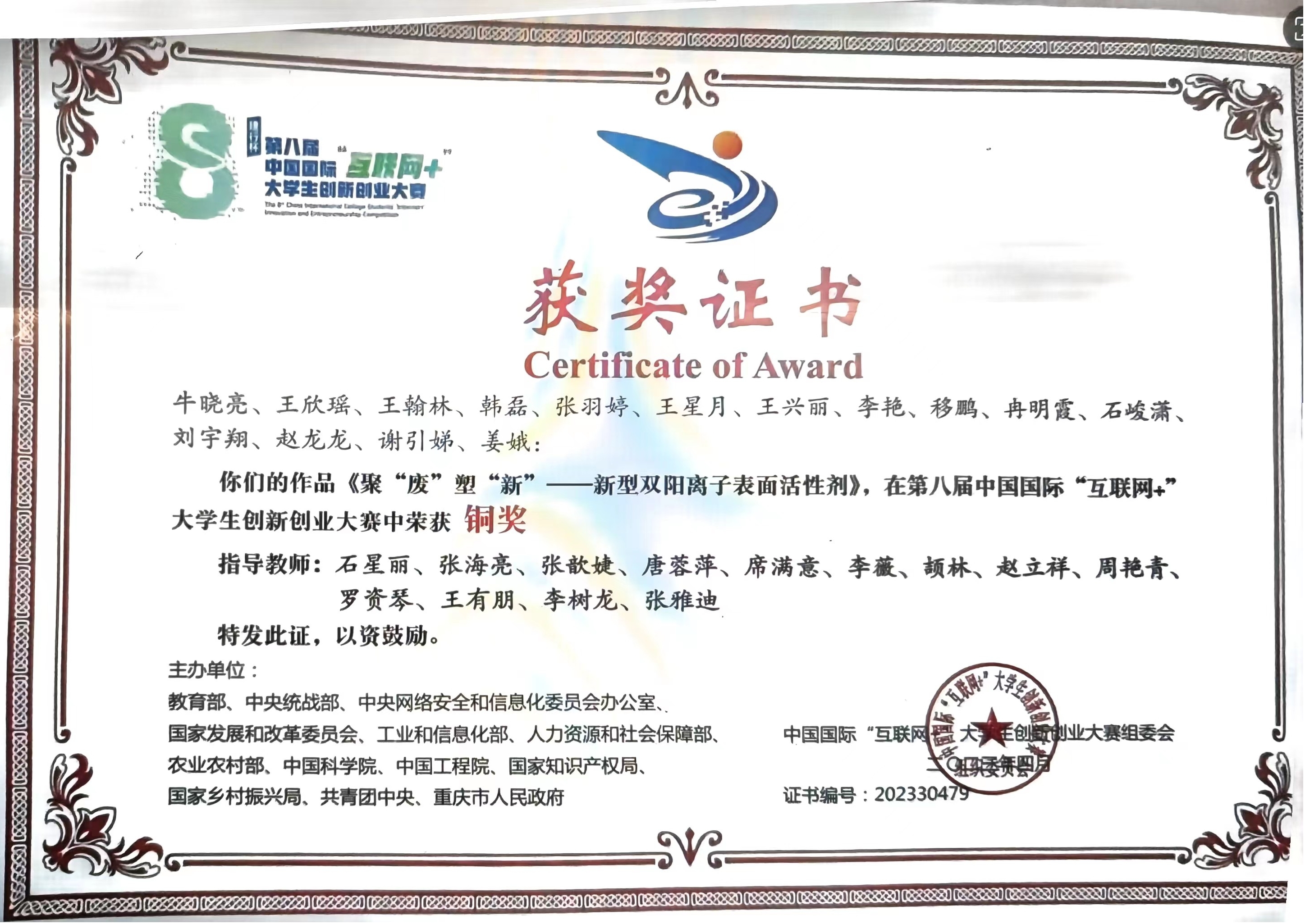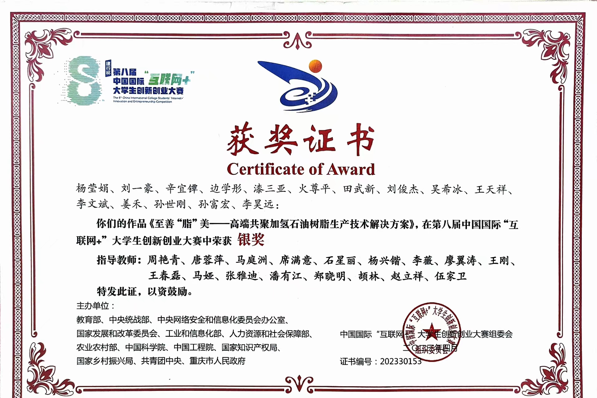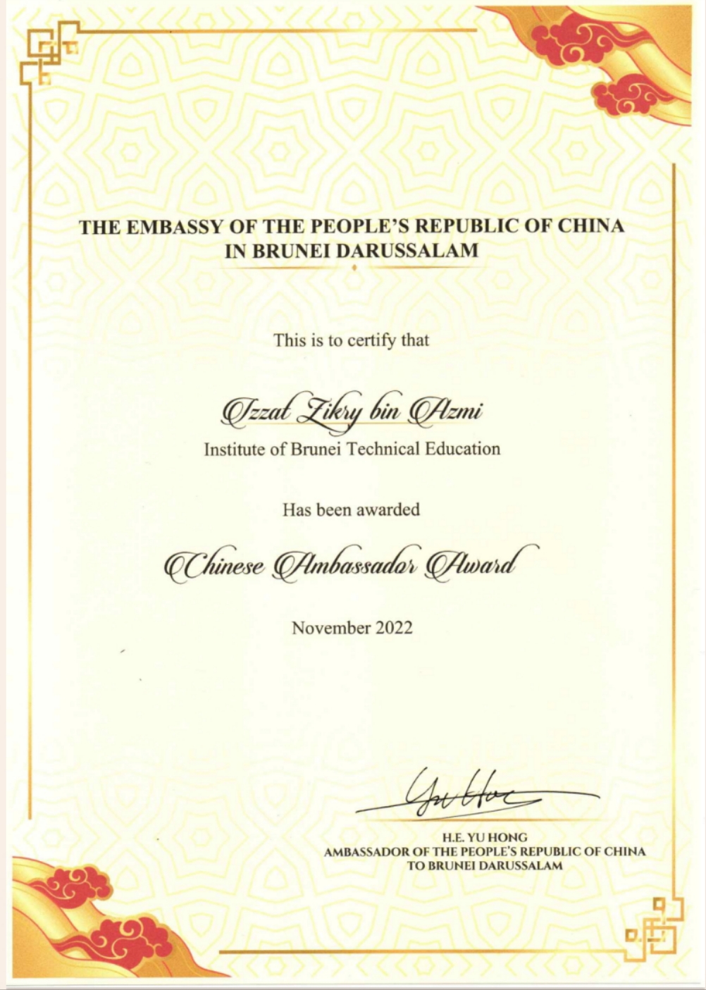 中国大使奖学金证书2
