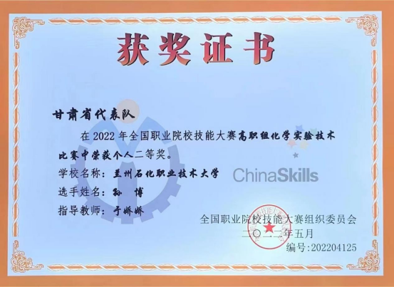 全国化学实验技术技能大赛二等奖