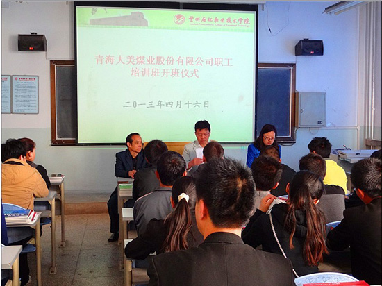 2013年4月16日上午,青海大美煤业股份有限公司职工培训班在西区化工楼201举行了开班仪式,石化系系主任冯文成、教学主任李薇、辅导员于爱平及全体学员参加了开班仪式。