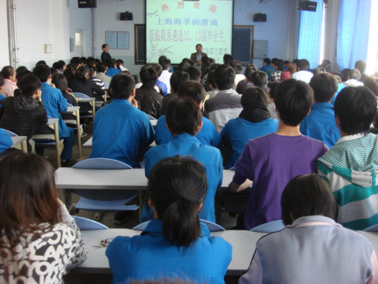 4月21日上午,上海海孚润滑油有限公司副总经理叶刚一行3人到石化系、应化系遴选2012、2013届毕业生。下午12点30分,企业领导在西区化工楼201教室召开了宣讲会。公司人事处、员工处领导、石化系、应化系领导、辅导员以及2012、2013届200余名毕业生参加了此次宣讲会。