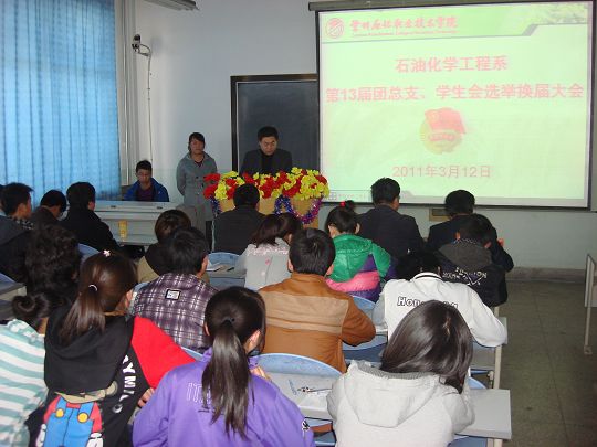为加强员工会的自身建设,选拔出品学兼优的新一届员工干部,顺利完成员工干部的新老交替,充分发挥员工会团结教育青年的核心作用和“自我教育、自我管理、自我服务”的职能,3月12日下午,石油化学工程系在化工楼209教室召开了第13届团总支、员工会换届选举大会。系主任冯文成、系党总支书记呼小洲、系团总支书记和石化系全体员工会干部参加了大会。