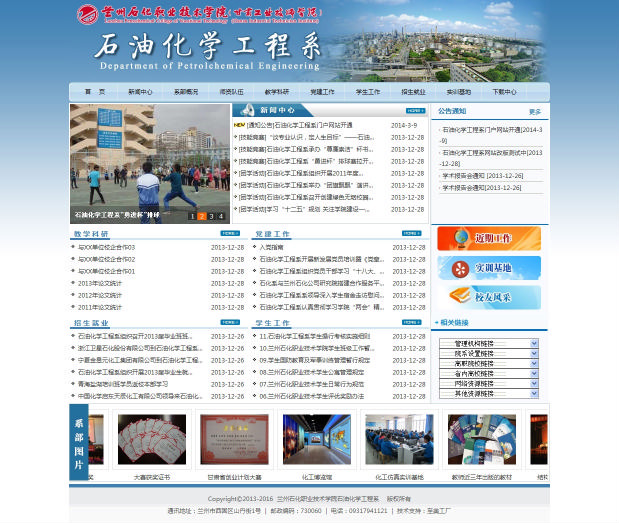相信石化系网站在广大浏览者的关心支持下,也将越来越趋于完善。石化系网站地址为:http://dept.lzpcc.edu.cn/shx,欢迎大家访问。