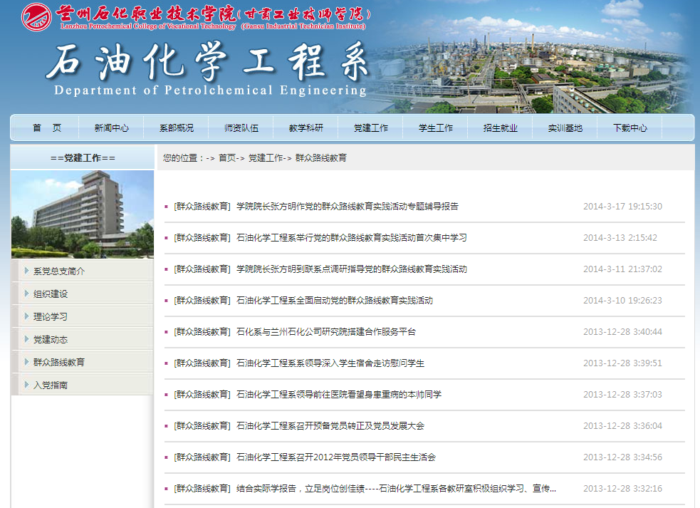 四是石化系在部门网站上专门开设了“群众路线教育”专栏,对中央、公司关于党的群众路线教育实践活动的相关文件进行了教育宣传,对党的群众路线教育实践活动以来我系开展的各项活动进行了宣传和报道。