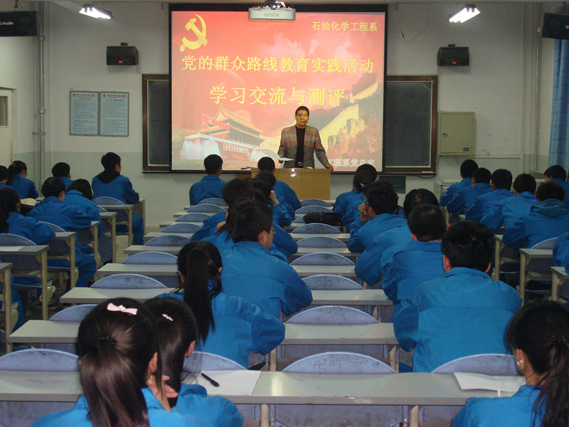 为进一步推动学习党的群众路线教育实践活动,加深党员对党的群众路线以及党章的了解,推进员工党支部工作的深入开展,提高党员意识,增强党员责任,3月31晚7点半,石油化学工程系于化工楼201教室举办“党的群众路线教育实践活动学习交流与测评”活动。系辅导员李胜泥以及12级各班预备党员共计80余人参加了此次活动。