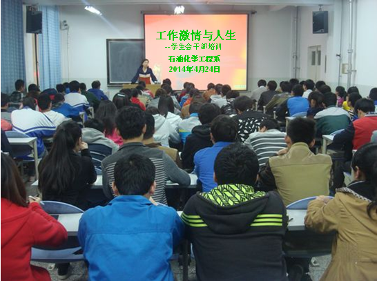 为了充分发挥我系员工会干部的模范带头作用,促进员工会工作更加科学化、规范化,更加流程化、高效化,使整个员工会员工干部充满激情的去工作,以进一步提高员工各类活动质量,石油化学工程系于4月24日晚6点半在化工楼209教室召开“工作激情与人生”专题干部培训大会。系辅导员史晓庆主持了本次培训。石化系员工会各部共计100余人参加了本次培训。