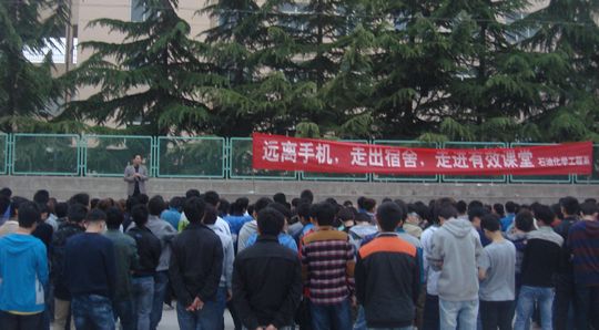 为了丰富同学们的老员工活,充实老员工活,让大学成为正真培养人才、发展人才的殿堂,石油化学工程系于4月24日清晨6点半在西区操场举行“远离手机,走出宿舍,走进有效课堂”倡导动员大会。本次动员大会由石油化学工程系辅导员李胜泥主持。