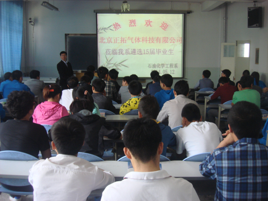 5月12日中午,北京正拓气体科技有限公司莅临石油化学工程系遴选毕业生,并在化工楼201教室进行企业宣讲。系党总支副书记唐蓉萍、系就业辅导员以及12级的80多名未就业同学参加了本次企业宣讲会。