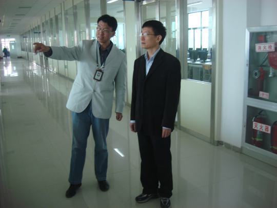 系主任冯文成带领企业领导参观新建的第四工业中心