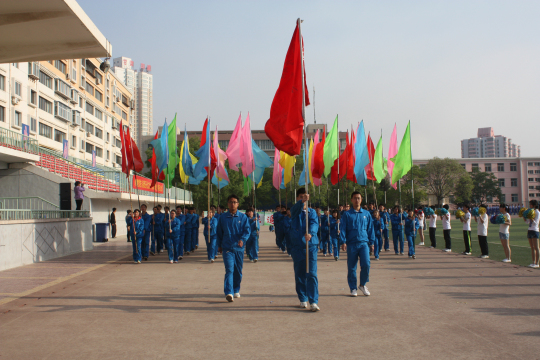 晨曦微露,在风中招展的彩旗队、气宇轩昂的男子方阵、精神抖擞女子表演方阵铿锵有力的带领下,秉承培养和教育广大青年团员的使命的团总支、具有“团结、奉献、求真、务实”的工作作风的员工会干部方队、迎合校园文化大发展,传达员工精神文化需求、革新思维观念的优秀载体的朝露文学社方队、本着“普及推广民族励志音乐,向广大音乐爱好者宣传中国的合唱艺术的老员工合唱团方队缓缓走来,随之,13级各班员工方队迈着矫健的步伐也依次进场,展现着各自的魅力风采,展现着各自创新特色。
