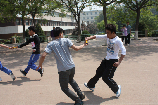 阳光下,娇翠欲滴的竞赛场上,到处是运动员矫捷的身影,他们不惧对手、不畏挑战、坚持不懈、勇敢拼搏,他们用速度战胜困难,用力量诠释体育内涵,用技巧赢得荣誉,用团结摘得桂冠。不论是径赛场上的奔跑与坚持,还是田赛竞技中的飞跃与投掷,亦或是趣味比赛中的团结与机敏,无不彰显着我系健儿们顽强拼搏、挥洒激情的精神与活力。赛场上别样精彩,看台前亦不失风光无限。观众们摇旗呐喊,加油助威,火热的激情一次次将赛场气氛推向高潮。各班级各部门积极协调、密切配合、责任到部、任务到人、井然有序地组织看台值班,只为一份荣誉,一份欢乐,一份情谊,一份源于对体育运动深深的爱。后勤工作也井然有序,各部门值班人员齐心协力,密切配合,为本次我系体育运动会期间的出色表现做出了重要贡献。