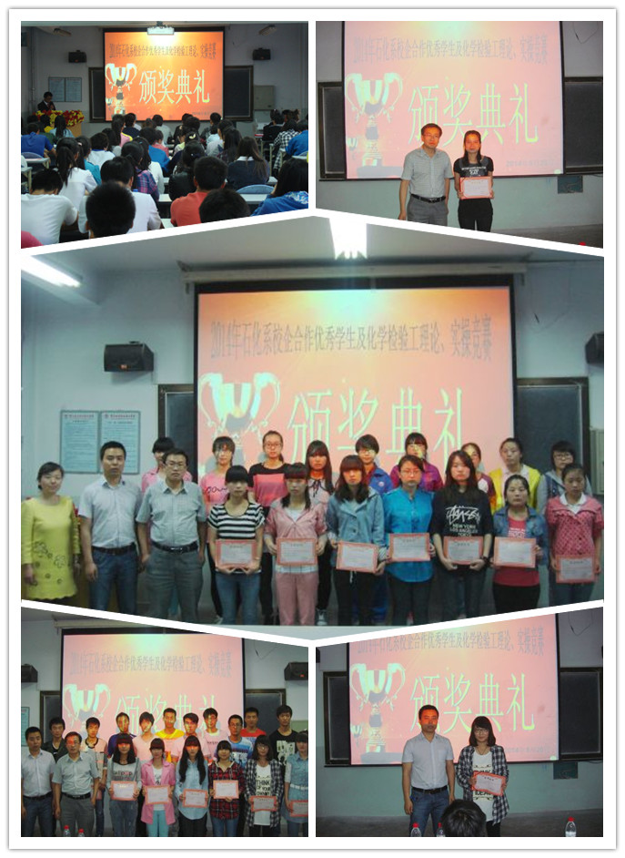 为了表彰我系同学在与校企合作项目、化学检验工理论知识、实操竞赛取得的优异成绩,同时培育员工的科学创造、创新能力,为我系营造良好的学习氛围。5月21日晚七点半,石油化学工程系于化工楼201教室举行“2014年校企合作优秀员工及化学检验工理论、实操竞赛”颁奖仪式。出席本次颁奖仪式的有石油化学工程系党总支副书记夏德强、校企项目合作指导老师颉林、辅导员史晓庆、系团总支员工会干部及各项目获奖同学共计100余人。