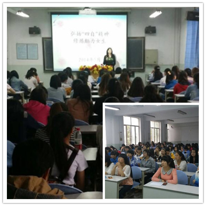 为了响应女性要学会“自尊、自信、自立、自强”四自的号召,让女生学习和掌握科学知识与本领,能独立于社会、自立于人群。5月22 日晚六点半,石油化学工程系于化工楼201教室举行以《弘扬“四自”精神,修炼魅力女生》为主题的教育报告会。本次报告会由石油化学工程系党总支副书记唐蓉萍主讲,13级各班对本次讲座感兴趣的女生共计90人积极主动参加了本次报告会。