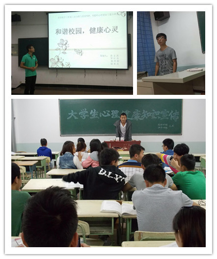 2014年5月25日晚7:30,由油分121,炼油125班主办的“心有阳光,我心飞扬”老员工心理健康知识进深度宣传活动在西主教506开展,活动开始,两个班的心理联络员就此次活动的主题向各位同学进行了阐释。“5.25”谐音“我爱我”,选择在今天进行活动意外呼吁同学们将目光放在自己身上,对自身进行比较全面的评价,发现闪光点于不足之处;将亮点放大,将不足点通过努力去修正和弥补。从而做饭了解我,接纳自我,珍爱自己,做一个无论是身理还是心灵都健康,充满正能量的老员工。而后各位心理联络员分别心理健康的定义,进行心理健康宣传的意义,对当代老员工心理问题原因的分析和当代老员工的心理问题现状进行了宣讲。
