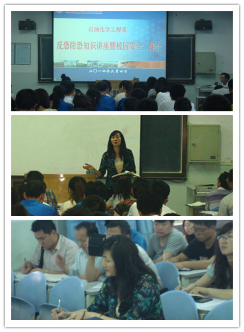 为了响应公司关于防恐反恐的要求,提高公民反恐防恐能力,加强我系师生的安全意识以及互助自救能力。6月4日晚七点,石油化学工程系组织开展“反恐防恐”知识讲座暨校园安全工作会议。系党总支副书记唐蓉萍、夏德强、全体辅导员、班主任、员工干部及各班心理健康联络员参加了本次会议。