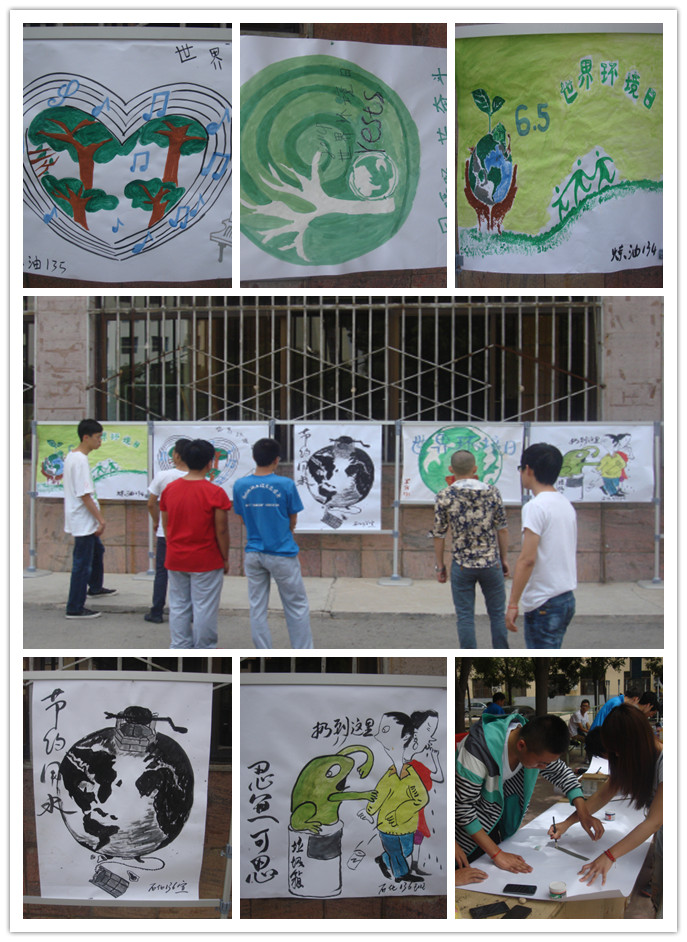6月5日是世界环境日,是提醒世界各国人民注意全球环境状况和环保重要性的纪念日。本届世界环境日中国的主题是“向污染宣战”、甘肃省的主题是“爱护家园、珍惜水源”。为了引导同学们对环境保护有正确的认识以及加强同学们的环保意识,在世界环境日来临之际,石油化学工程系于6月5日中午12点半在西区特步篮球场举行“世界环境日”现场宣传海报征集大赛。13级各班热爱绘画的同学共计30人参加了本次现场海报征集大赛。