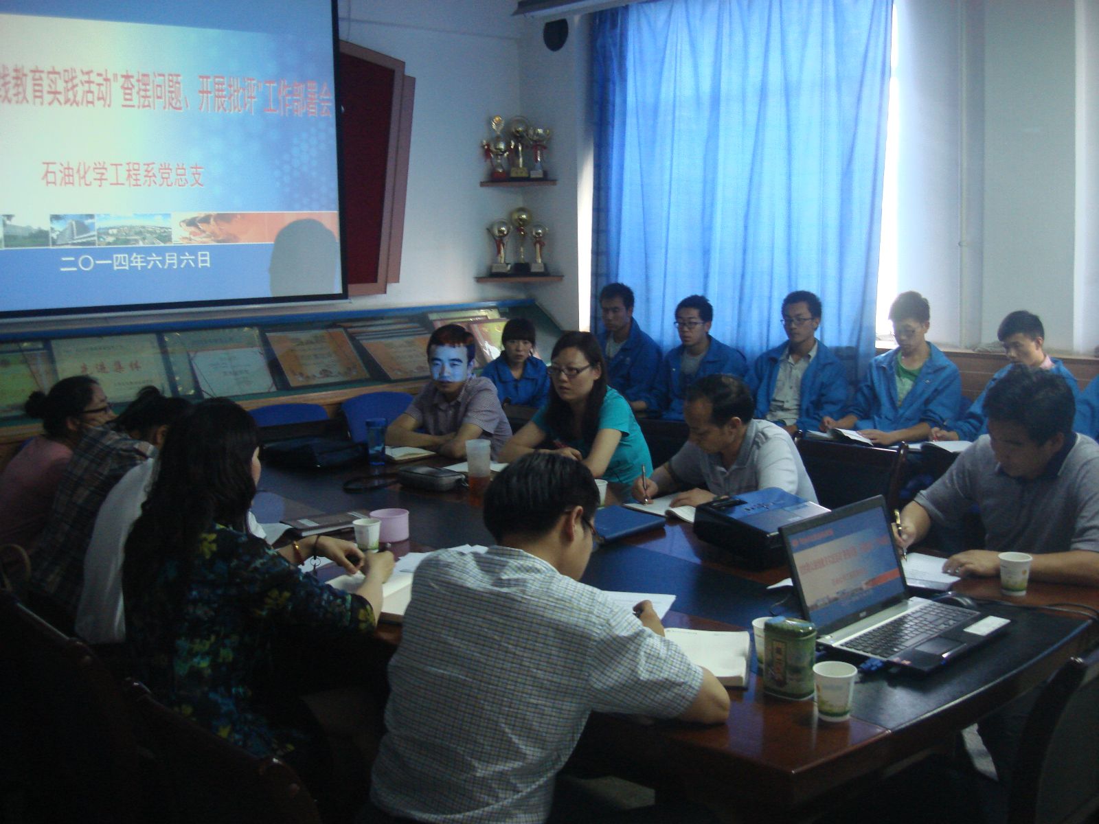 根据公司党的群众路线教育实践活动的相关通知精神,石油化学工程系于6月6日下午于化工楼三楼会议室组织开展了党的群众路线教育实践活动“查摆问题,开展批评”工作部署会。石化系党总支副书记唐蓉萍、夏德强、系教学副主任李薇、教职工党员15人、全体辅导员以及员工党员30人等参加了本次会议。