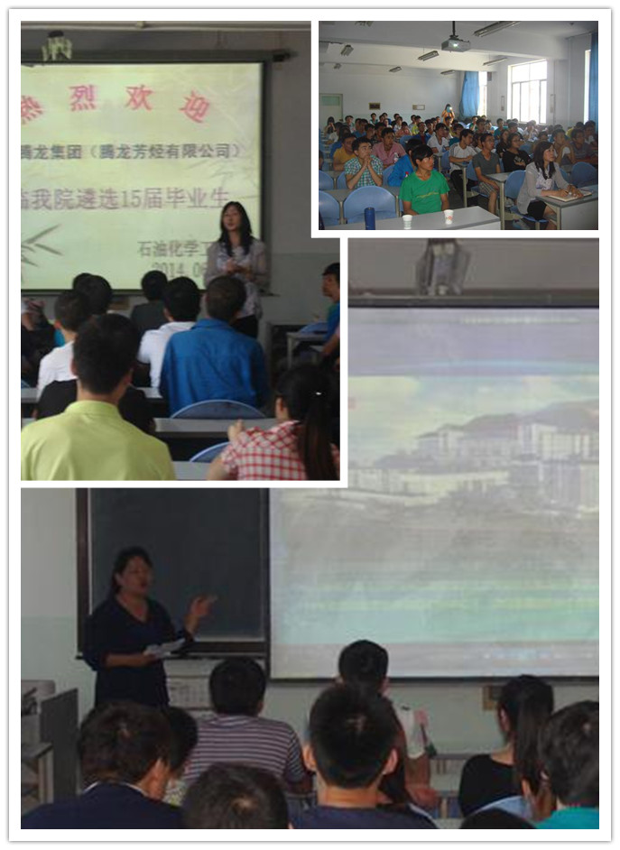 6月16日,翔鹭腾龙集团(腾龙芳烃有限公司)张经理等一行2人莅临我系遴选2015届毕业生。下午1点半在石油化学工程系化工楼209教室举行了企业宣讲报告会,石化系及应化系的2015届毕业生共计70多人到场聆听了此次报告会。石化系党总支副书记唐蓉萍、系就业辅导员参加了此次报告会。