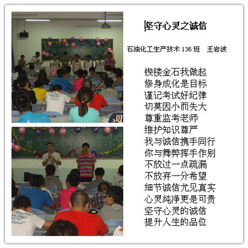通过本次活动,有助于将诚信深入到员工的内心,从而引导员工的学习与行为,为员工今天的日常生活、明天的签约就业,职业生涯奠定坚实的基础。同时也进一步促进了同学们对践行社会主义核心价值观,争做石化诚信学子有了更多的信心。