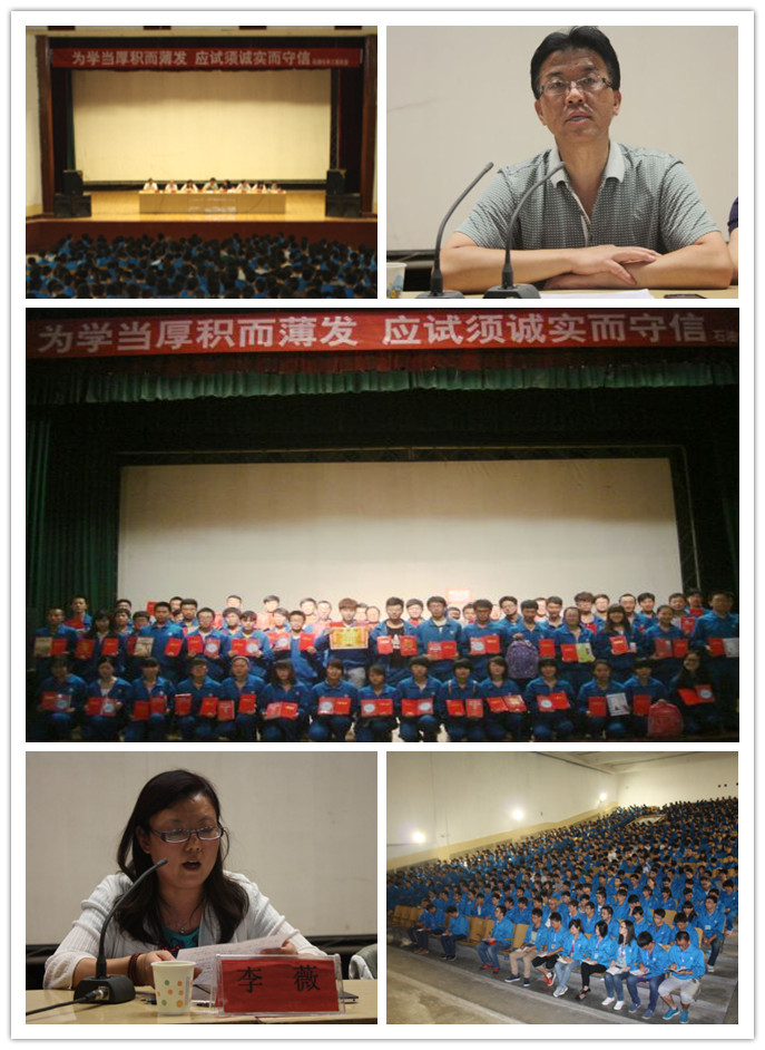 为进一步加强学风建设,提高员工学习的主动性和自觉性,加强员工诚信意识、遵纪意识,营造良好的学习、考试氛围,做到“消灭不及格,实现零作弊”,石油化学工程系于6月19日晚7点半在西校区礼堂召开了诚信教育暨学风建设表彰大会。石油化学工程系领导、教学秘书、辅导员及石化系12级员工代表和13级各班全体同学参加了大会,大会由系党总支副书记唐蓉萍主持。