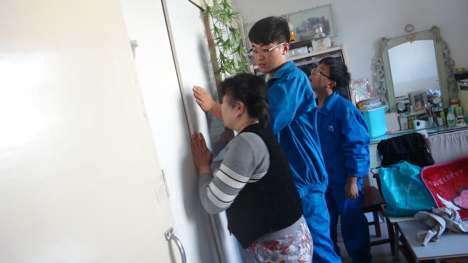 党员志愿者帮郭阿姨修柜子