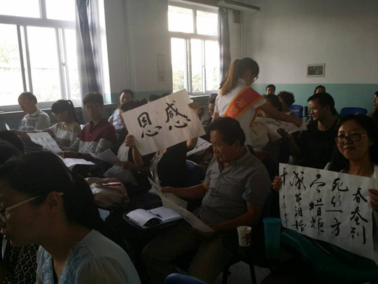 最后,在系副主任李薇带领下,全系教师面对国旗庄严宣誓,增强教师的使命感、责任感。此次活动中,同学们还将自己亲手书写的感恩老师的话语送给老师们,表达了同学们对老师的爱戴和感激。