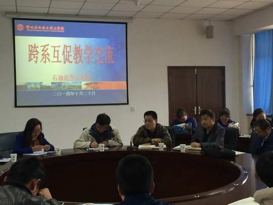 为了进一步深化教学改革,加强教学团队建设,寻求专业发展新思路,开辟新途径,推进教研活动工作的有效开展,根据公司安排,2014年10月20日石油化学工程系组织开展了本学期跨系互促教研活动。本次教研活动围绕《工业仪表自动化》、《化工设备基础》这两门课的内容开展交流,石化系邀请电子电气工程丁炜老师、机械工程系王宇飞老师与参与交流,教务处领导、石化系全体教师参加了此次活动。