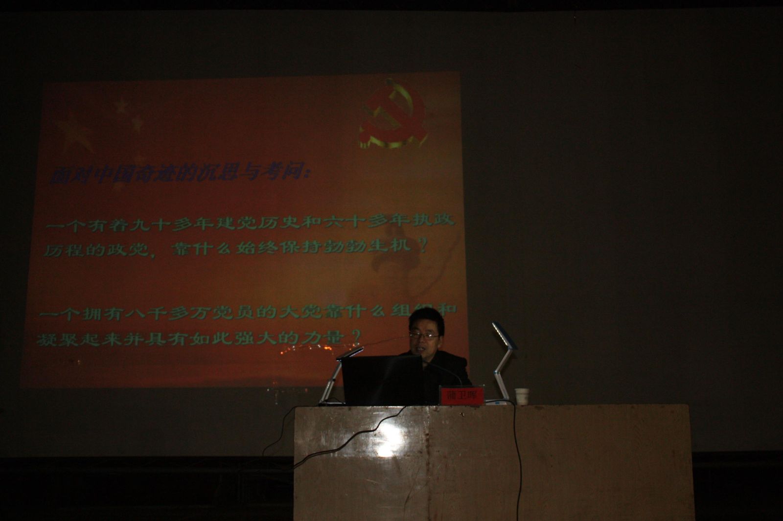 会上,蒲卫晖首先由西方学者的疑问提出了对党性发展的探讨。而后,他从中国共产党的纪律、中国共产党的优良作风进行了深入浅出的讲解并不时结合真实的案例,指出了党的纪律的五个重要特点以及党的纪律的八项基本内容,以事实证明党的作风建设的重要性和紧迫性。会上,他还模拟真实情景和同学们进行交流,使同学们深刻了解了遵守中国共产党的组织原则、纪律和作风的重要性和必要性。