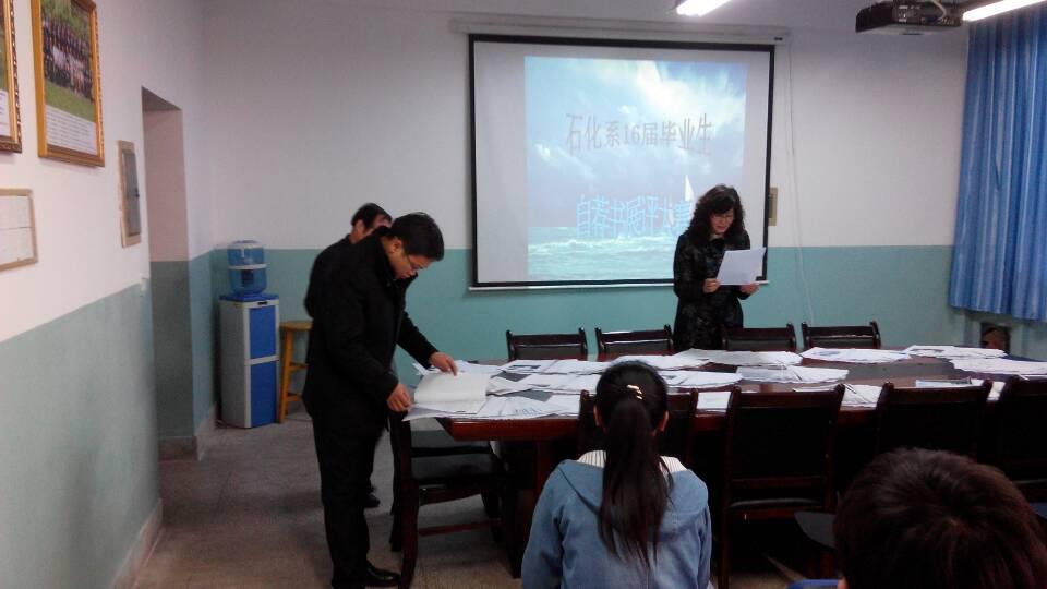 为进一步做好2016届毕业生就业招聘各项准备工作,3月19日下午,石油化学工程系于石化楼309教室举办了16届毕业生自荐书展评大赛。石化系领导、系辅导员、13、14级各班班长、团支书、学习委员及员工代表约60余人参加了本次大赛。此次展评大赛以“塑造自我、展示自我、推销自我、”为主题,以自荐书(电子版、纸质版)设计比赛的形式展开,旨在督促16届毕业生提前做好应聘准备,引导14级同学树立就业意识,认识到自荐书对参加就业应聘的重要性。