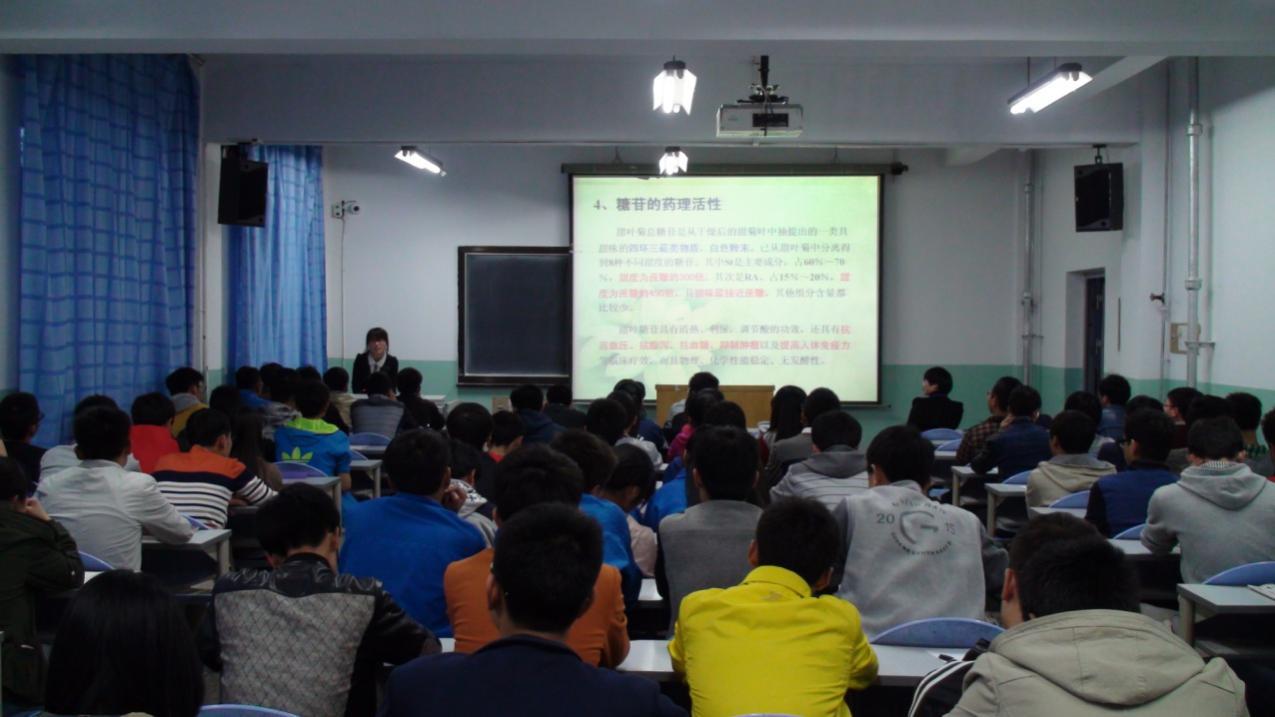 3月26日晚,石化系于石化楼207教室举办了第八期青年教师学术论坛,化学教研室青年教师王红玉为大家做了题为《甜叶菊中总糖苷和总黄酮的提取、纯化工艺研究》的报告。石化系师生100余人参加了本次论坛。