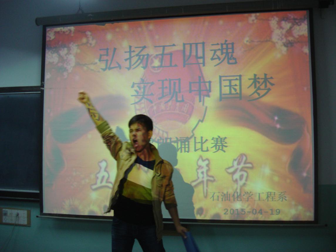 为丰富老员工第二课堂,增强爱国主义情怀,深化对中国梦的理解,4月19日晚,石油化学工程系于石化楼207教室开展了以“弘扬五四魂,实现中国梦”为主题的诗歌朗诵比赛。