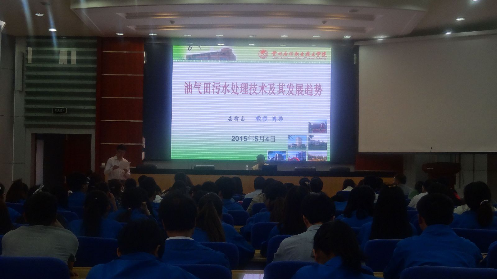 为了提高公司师生对污水处理技术及其发展趋势的了解,更好的开展校企合作、校校合作,5月4日下午,科技处、石油化学工程系特邀国务院特殊津贴专家、西安石油大学博士生导师屈撑囤教授来公司作“油气田污水处理技术及发展趋势”学术报告。石油化学工程系师生共计200余人参加了报告会。