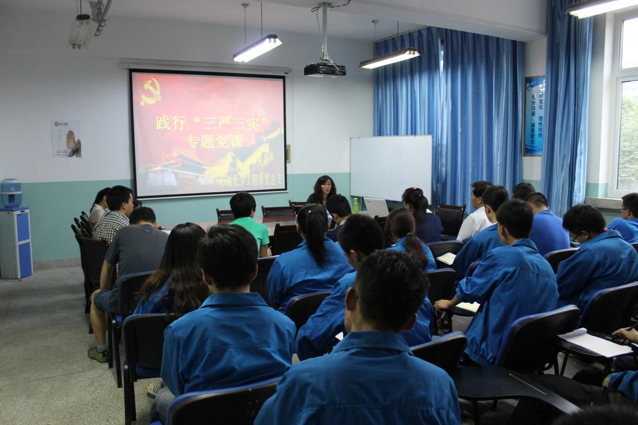 为了进一步增强党员的修身意识,培养党员树立良好的作风。石油化学工程系党总支于6月17日晚在石化楼三楼会议室开展了“三严三实”专题党课,教职工党员和员工党员参加了此次党课培训。