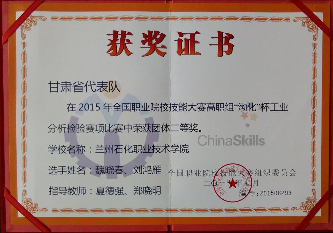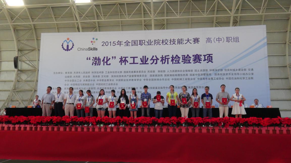 7月1日,2015年全国职业院校技能大赛“渤化” 杯工业分析检验赛项在天津渤海职业技术公司胜利开幕,大赛是由教育部主办,天津渤海职业技术公司承办的国家级赛项。竞赛由三个模块组成,分别为专业理论知识与气相色谱-质谱联用仿真操作、化学分析实操和仪器分析实操。此次大赛共有来自全国32个省市的113支参赛队的226名选手参加,其中63支代表队的126名选手参加了高职组的竞赛角逐。公司和兰州职业技术公司组成甘肃省代表队参加了此次大赛。本届大赛高职组设团体一等奖(参赛院校队数的10%,6支代表队),二等奖(参赛院校队数的20%,12支代表队),三等奖(参赛院校队数的30%,18支代表队)。