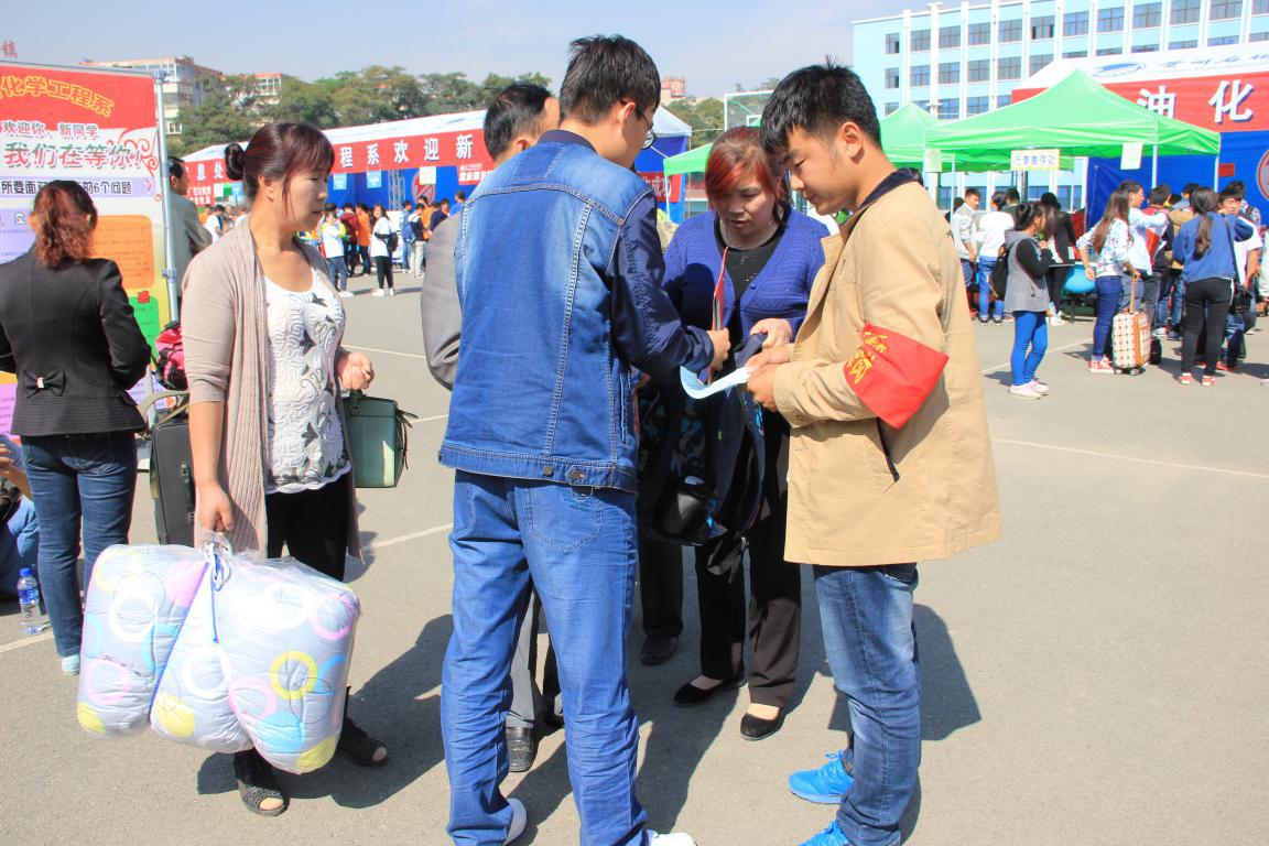 红色条幅,彩色气球,醒目的指示牌,面带微笑、热情服务的迎新志愿者,穿梭在校园的每个角落,一片繁忙、井然有序的迎接着每一位新生的到来,各处走访巡查、随时解决各种问题的院系领导;满脸喜悦、充满期待的新生和家长,这一切的一切,构成了校园内一道靓丽的风景线。