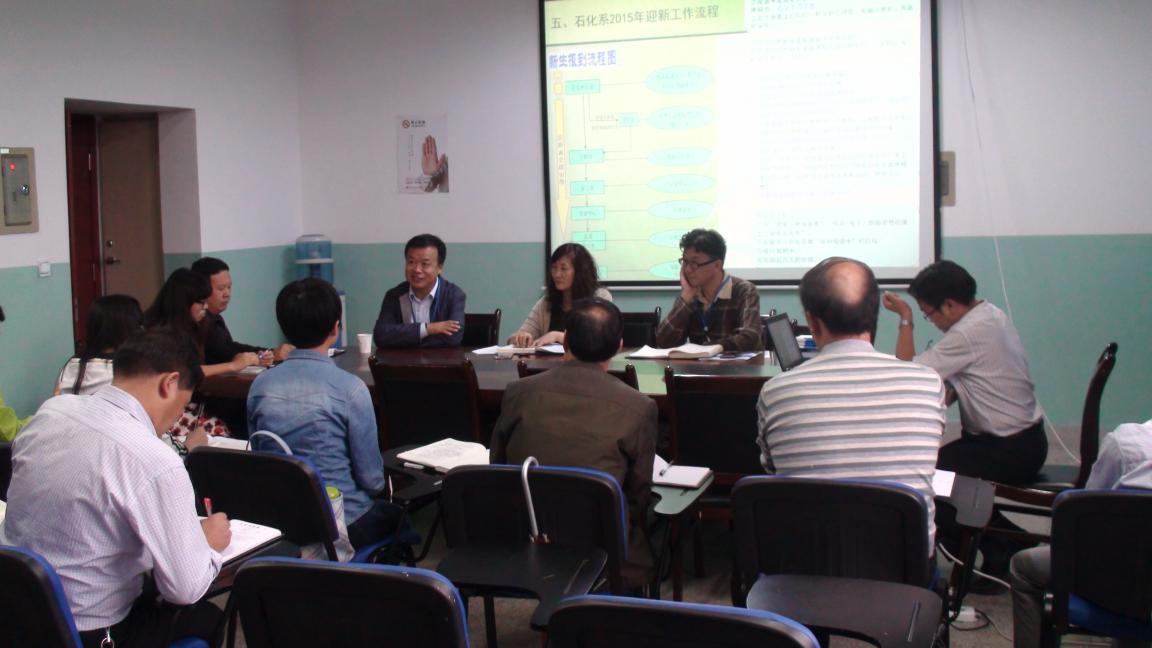 为了使迎新工作顺利进行,给2015级新生更好更全面的服务,石化系专门就迎新工作进行全面部署,统一思想,明确任务,细化分工,提出要求。先后开展了“新生班主任培训”和“迎新志愿者培训”;组织了由20余名教师及60名员工干部及党员先锋岗的员工组成迎新队伍,负责迎新志愿服务工作。此外,为了预防天气变化,石化系还特地准备了50把“爱心雨伞”。11-12日两天,热情的志愿者们,统一着装,佩戴工作牌,各就各位,站在迎新的第一线。