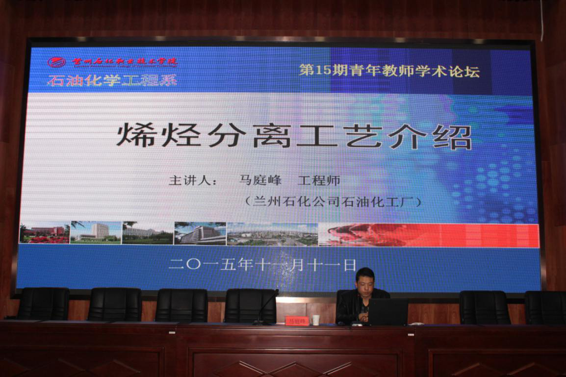 11月11日下午,石油化学工程系、科技处特邀请兰州石化公司石油化工厂石化系优秀员工马庭峰工程师于公司西区多功能报告厅作题为《烯烃分离工艺介绍》的学术报告。石化系师生约300人参加了本次报告会。