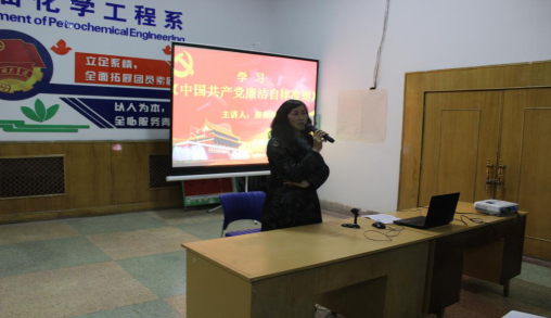 为进一步夯实“三严三实”教育基础,充分发挥员工党员的先进模范作用,树立老员工党员良好形象,石油化学工程系于11月19日晚组织员工党员学习了《中国共产党廉洁自律准则》,石化系党总支副书记唐蓉萍担任此次主讲。