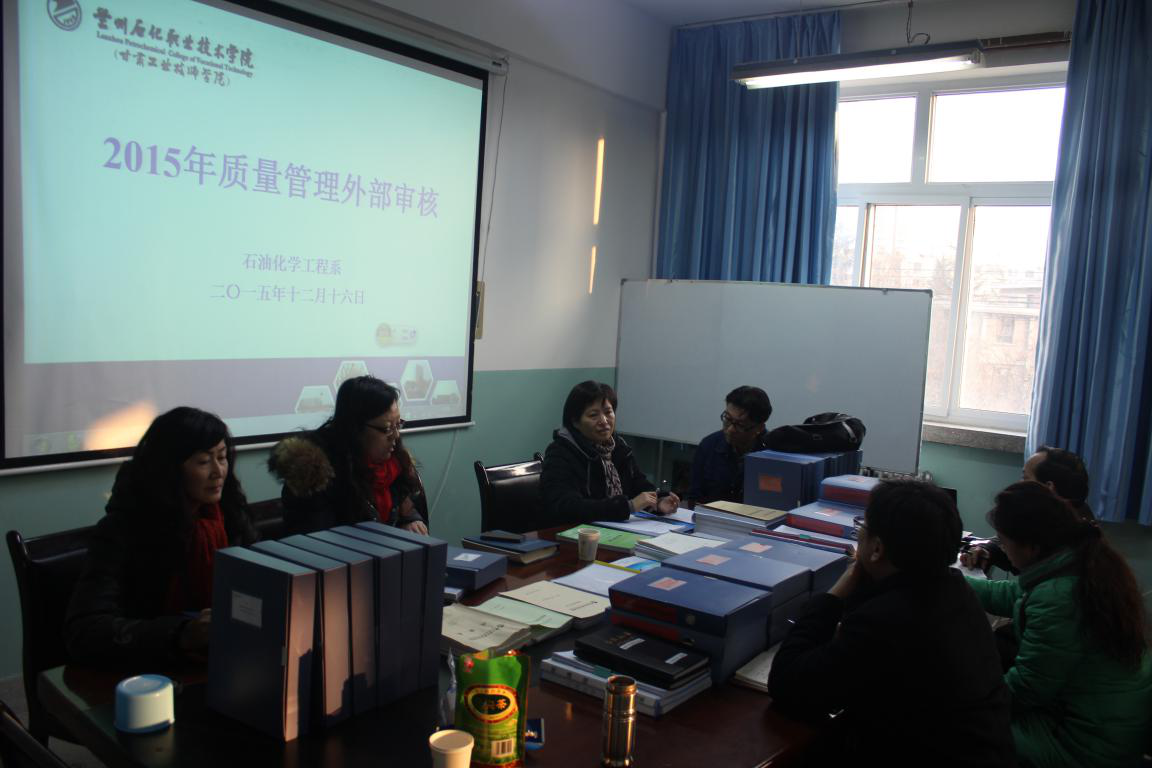 质量管理外审专家以质量管理体系的要求、规章、流程为依据,对石化系的年度工作目标,、人才培养方案制定、公司产品过程监控、实训设备管理资料、存在问题及整改措施、员工大型活动组织、就业质量及满意度等进行了一一审核。
