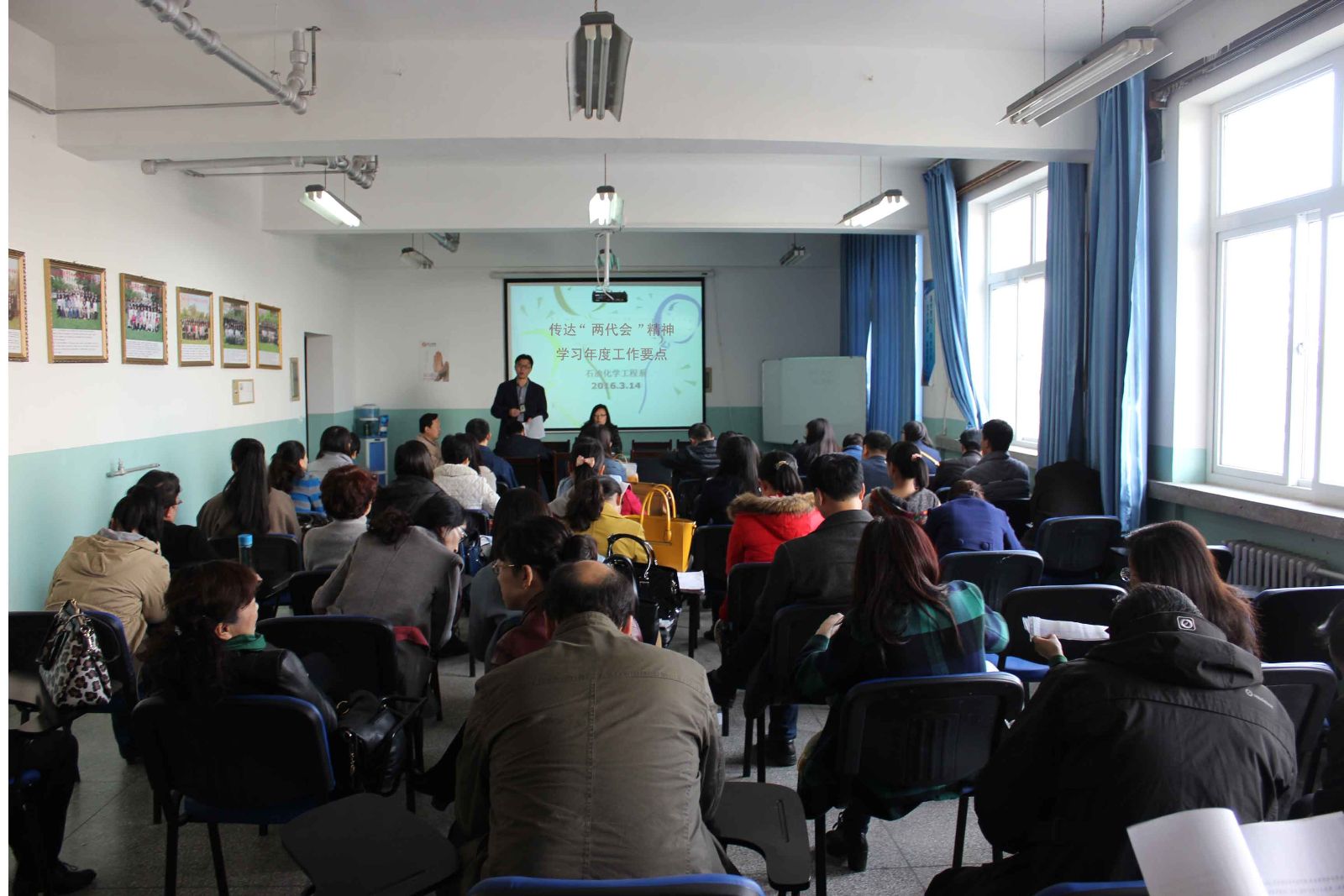 首先,冯文成带领全体教师学习了经理高溥在大会上所做的题为《统一思想、明确目标、坚定信念、扎实工作,奋力推动公司“十三五”发展开好局、起好步》的工作报告。随之,宣传了公司2016年的工作安排的十项重点工作:一是抓党建思政,切实加强党委统领;二是抓创新发展,重点深化体制机制改革;三是抓质量内涵,不断提高公司产品水平;四是抓教育管理,全面服务员工成长成才;五是抓校企合作,持续深化产教研深度融合;六是抓应用创新,不断提升教科研水平;七是抓精细严实,着力提高科学管理水平;八是抓基础建设,持续改善办学条件;九是抓精准扶贫,扎实推进双联工作;十是抓统筹协调,全面做好其他各项工作。