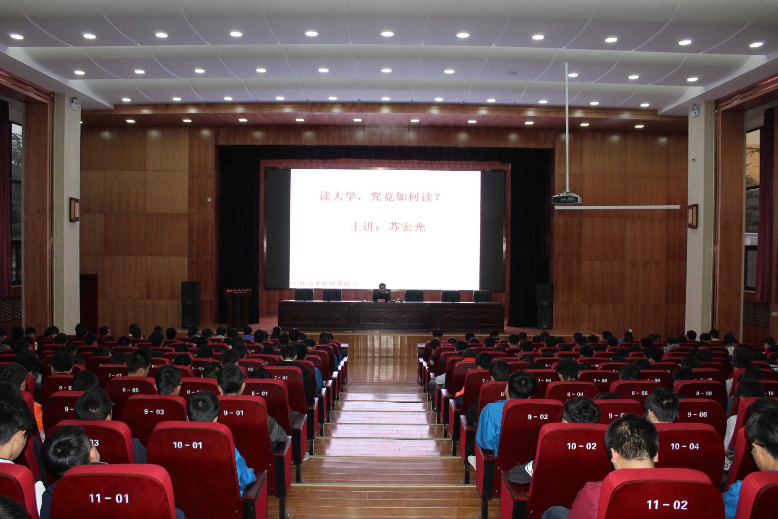 4月27日晚,石油化学工程系在西区报告厅举办了第二十一期教师学术论坛,水处理教研室主任苏宏光老师作了题为《读大学,究竟如何读》的主题报告。石化系14、15级350余名同学参加了此次论坛。