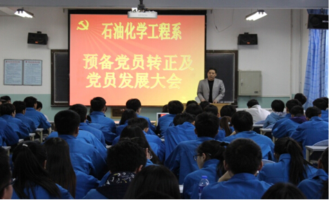 5月25日晚,由石油化学工程系员工党支部组织的“预备党员转正及新党员发展大会”在化工楼隆重召开,大会由系辅导员主持,石化系领导、全体党员、预备党员、入党积极分子代表近160人参加了会议。
