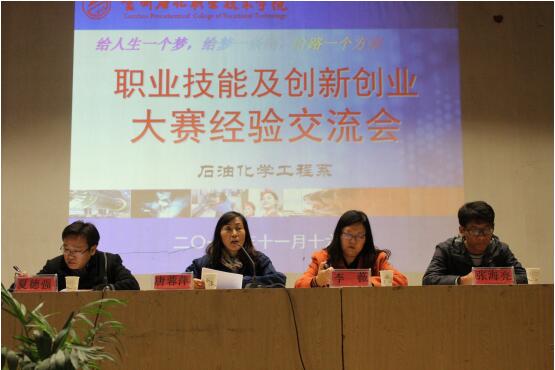 为了进一步加强学风建设,拓展教学手段和方法,切实提高化工检验技能,11月16日晚,石油化学工程系于西区礼堂组织开展了职业技能大赛及创新创业大赛经验交流会。本次交流会由系党总支副书记夏德强主持,系党总支副书记唐蓉萍、系副主任李薇、系团总支书记张海亮以及15、16级全体员工参加了会议。