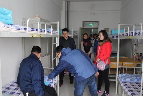 在此次宿舍卫生大检查活动中,呼小洲、夏德强带领班主任们,先后对西区男生公寓1号楼、2号楼、4号楼和8号楼进行了全面检查。检查主要针对用电安全、床铺整洁、宿舍卫生以及卫生工具摆放等方面展开,并对每一个宿舍的综合情况进行评分,择优加以奖励。其中1号楼308宿舍物品摆放整洁、床铺收拾规范、地面干净卫生,宿舍成员因此受到了领导和老师们的一致赞扬。而另一个宿舍因床铺整洁度较差,辅导员老师则亲自帮助员工铺床叠被,表现出了老师们对同学们日常生活的关心和重视。通过这次检查,使同学们重新认识到了宿舍安全、环境卫生等方面的重要性,检查过后,同学们纷纷表示,今后要发扬宿舍文明精神,为自己和他人创建一个舒适,幽雅的生活环境。