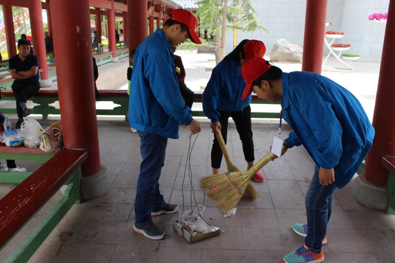 下午两点,志愿者们分三路展开活动:一队留在公园门口,帮助公园值班人员维持秩序,疏导交通;其余两队分别从东西两个方向出发进行公园卫生环保工作。有的志愿者用夹子重点清理游客们遗留在公园草坪、花坛里的食品袋,饮料罐,香烟盒。有的志愿者用笤帚、簸箕清理游客们遗留在公园小路、凉亭回廊里的水果皮、香烟头、瓜子壳等垃圾。经过两个多小时的辛勤劳作,公园景色变得更加靓丽。在同学们劳作过程中,游客们都主动配合工作,更对同学们的行为赞赏有加,对志愿者们的奉献精神给予了充分肯定。