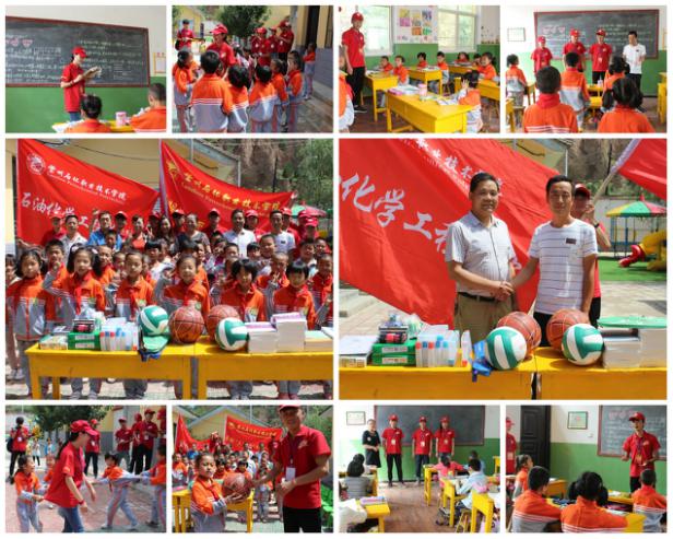 7月7日清晨,小分队到达了黄庄村小学。同学们走进教室,那一张张稚嫩的脸庞至今还在同学们的眼前浮现。在教室里,全体小分队队员走上讲台,结合小员工的接受能力,小分队的成员们按照早已准备好的互动方案,为同学们讲授学习方法,传授学习经验,解疑答惑。为调动小员工学习的积极性,小分队还准备了别开生面的趣味活动。在传授知识的同时,为小员工减轻了即将到来的期末考试的压力。最后,小分队举行了隆重的捐书仪式,为黄庄村小学的师生送上了书本、篮球等精心准备的礼物,体现了石化学子的一片真情。