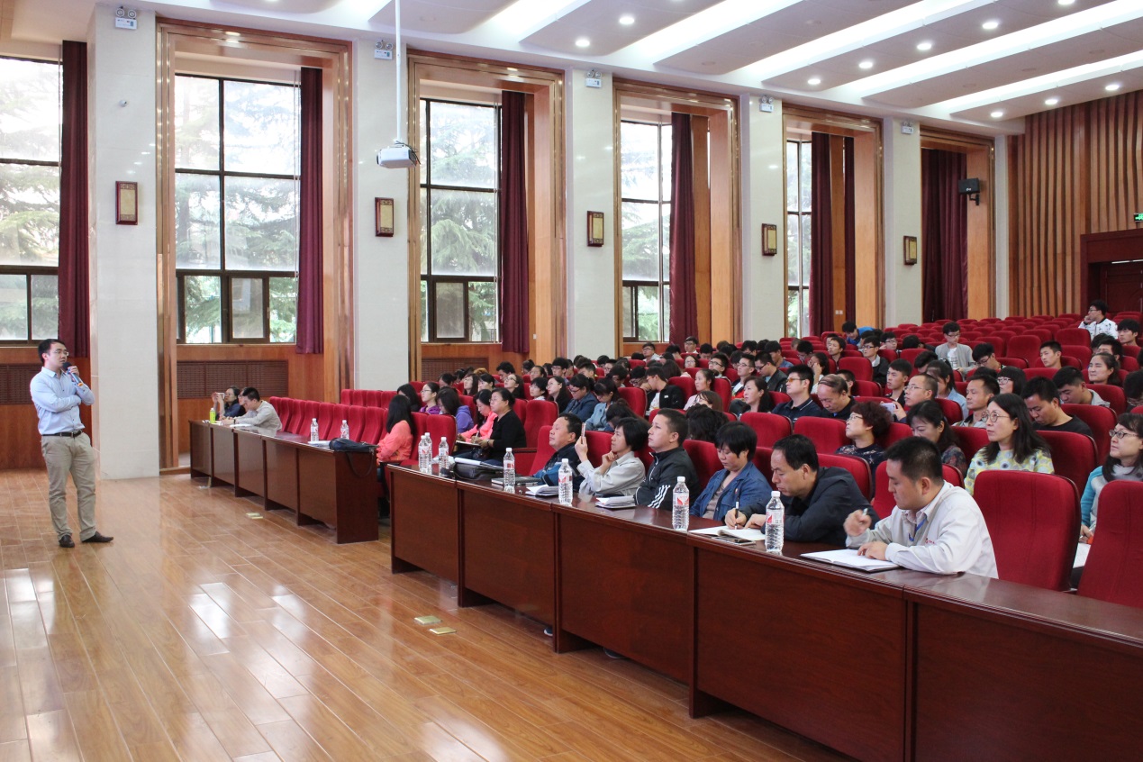 下午,梁旭教授在西区报告厅举办了主题为《坚定前行一百万年——从材料化学起源谈到今日卟啉化学进展》的学术讲座,公司领导、全体教师及2016级部分班级的员工到场参加,报告会由党总支书记呼小洲主持。