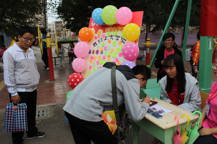 能够来到石化公司学习,顺利完成报到并写下自己的心愿,这位大一新生脸上露出了灿烂的笑容。